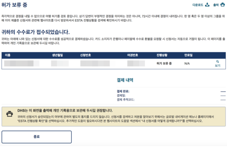 - 나중에 참조할 수 있도록 ESTA 신청 번호를 기록해 두십시오.