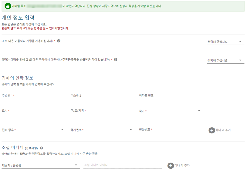 미국에 체류하는 동안 머무를 주소는 동일하게 작성을 하면 되구요.