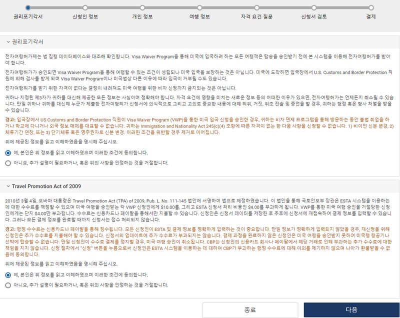 ESTA 신청서 작성방법