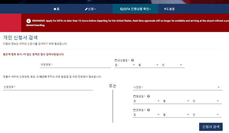 - 제출 및 처리 시간: 미국으로 출발하기 최소 72시간 전에 신청서를 제출하십시오. 대부분의 신청서는 몇 분 안에 승인되지만 일부는 최대 72시간이 걸릴 수도 있습니다.