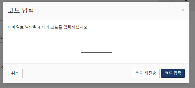 메일 확인을 하면 4자리 코드가 나옵니다. 이걸 입력을 해야지만 다음 단계로 넘어갈 수 있습니다.